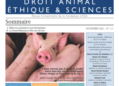 Article publié dans le numéro 102 de la revue Droit Animal, Éthique & Sciences
