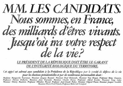 Appel candidats présidentiels intégrité biologique LFDA (recadré)